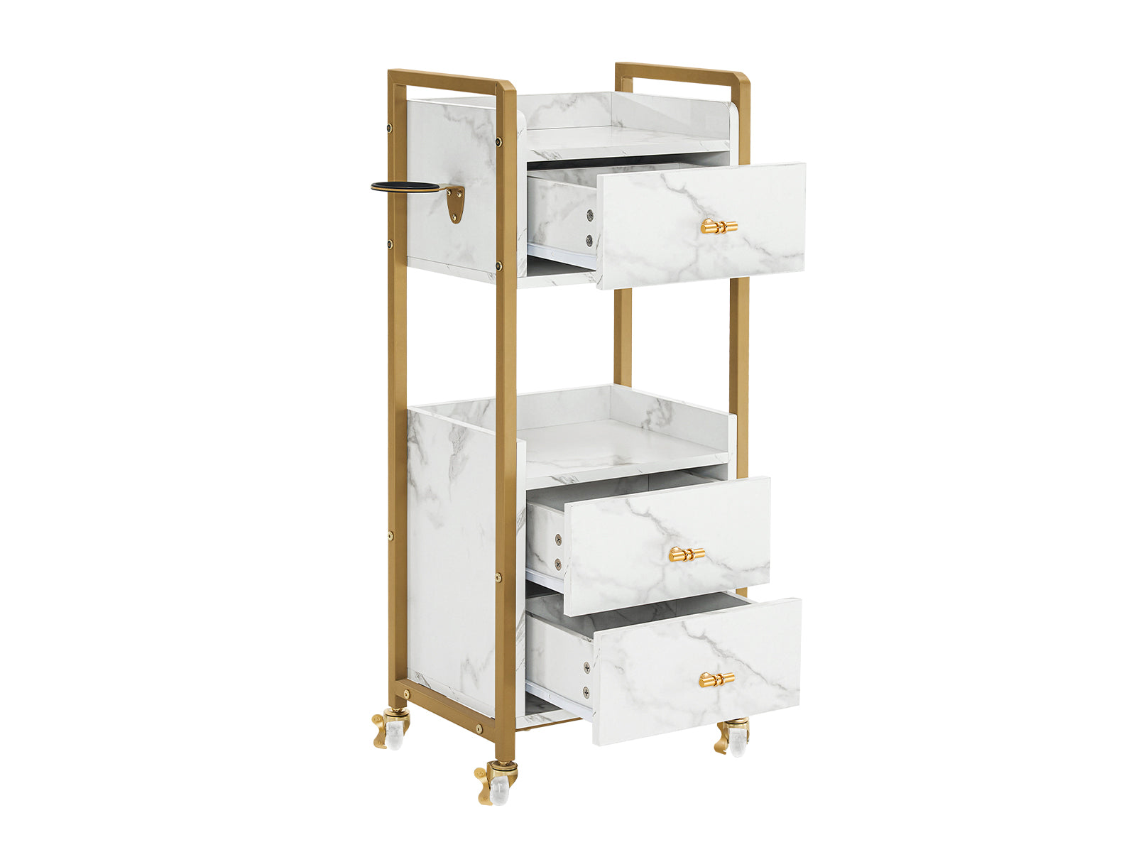 [Premium Material]: The barber trolley adopts the high-quality integrated metal frame, which makes the entire salon cart easy to install while ensuring product stability. Gold plated handles give you a different visual effect.