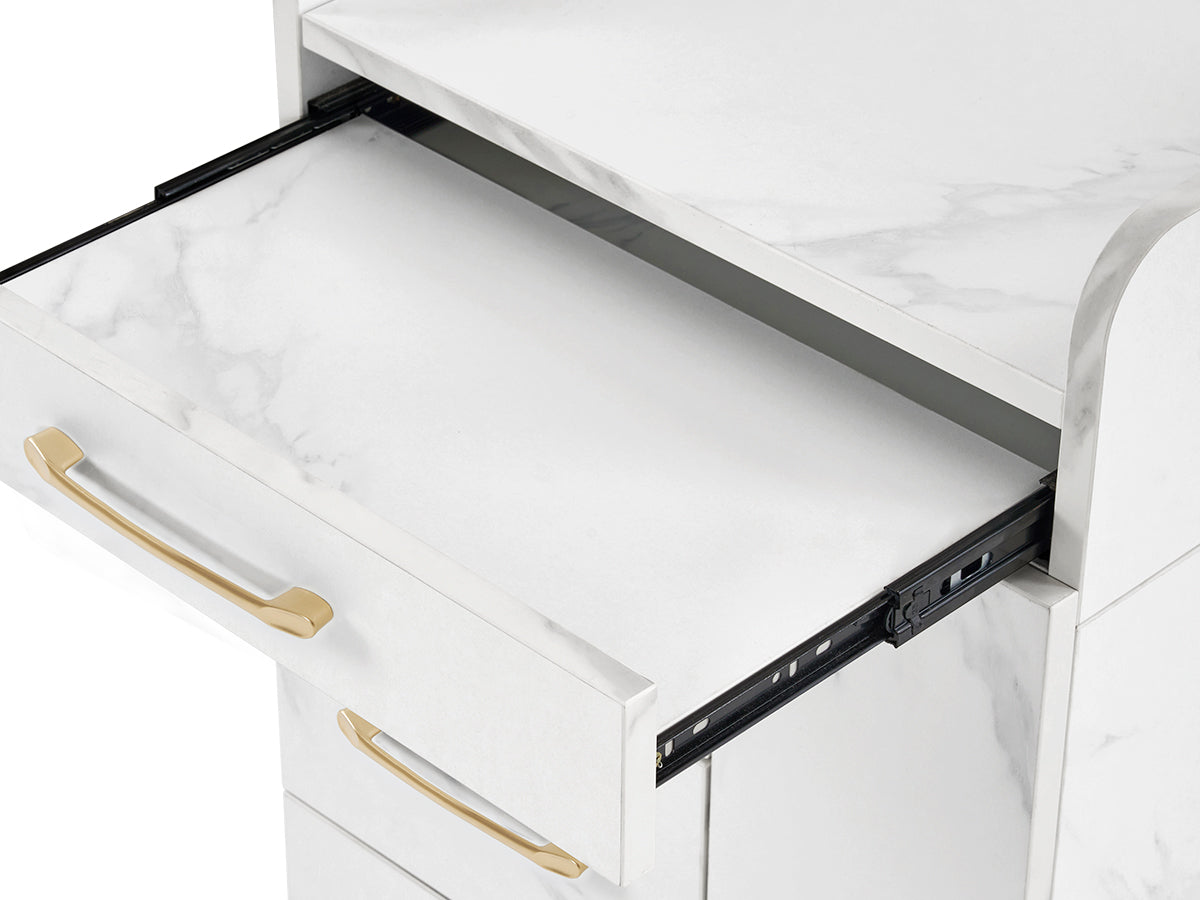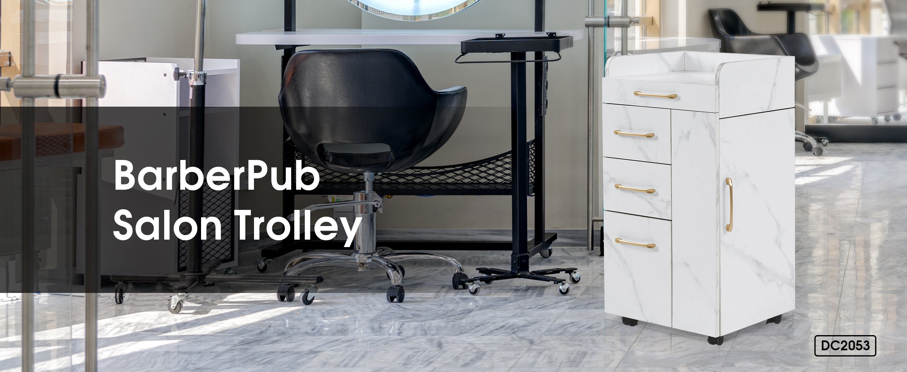 After years of research and development of the barber equipment, we are excited to bring this new beautiful rolling salon cabinet to our customers around the world. With multiple drawers and cabinets, this storage cart can provide large and diversified storage space for both starters or professional barber or beauty shop owner. The hidden tool holders and shelf on the side are designed for easy organization of salon supplies so you can keep your workstation nice and neat.