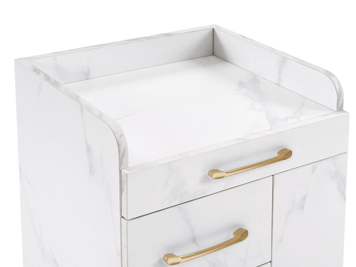 [Premium Touch]: The barber trolley is made of high-density particle boards that are durable and solid for long term use. The vivid marble texture also gives a touch of modern for your salon or beauty shop.