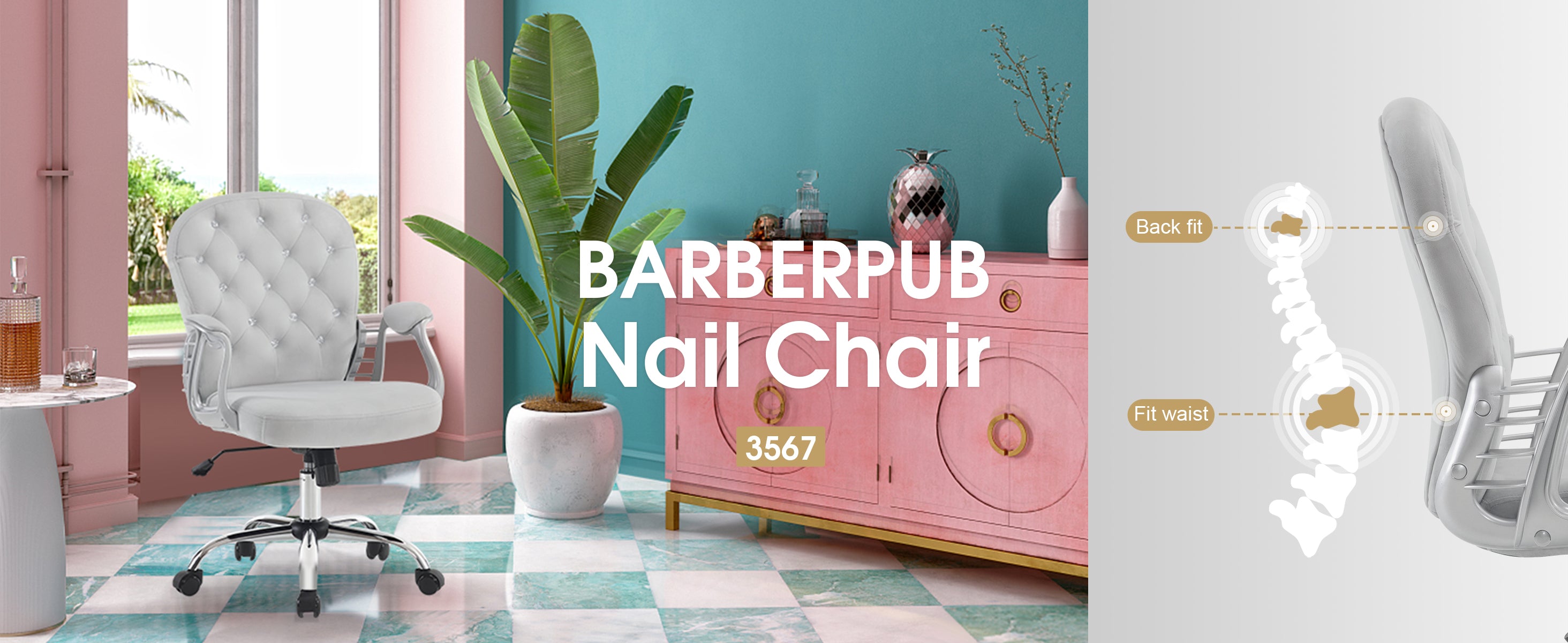 [Ergonomic Design]: Our beautiful nail chair is designed to provide comfort for manicurists and salon clients during long hours of manicure work. The vanity chair is equipped with supportive backrest that conforms to the body's natural curves, the 4-inch thick cushion, and the curved handrails, which help reduce stress and enhance the nail experience.