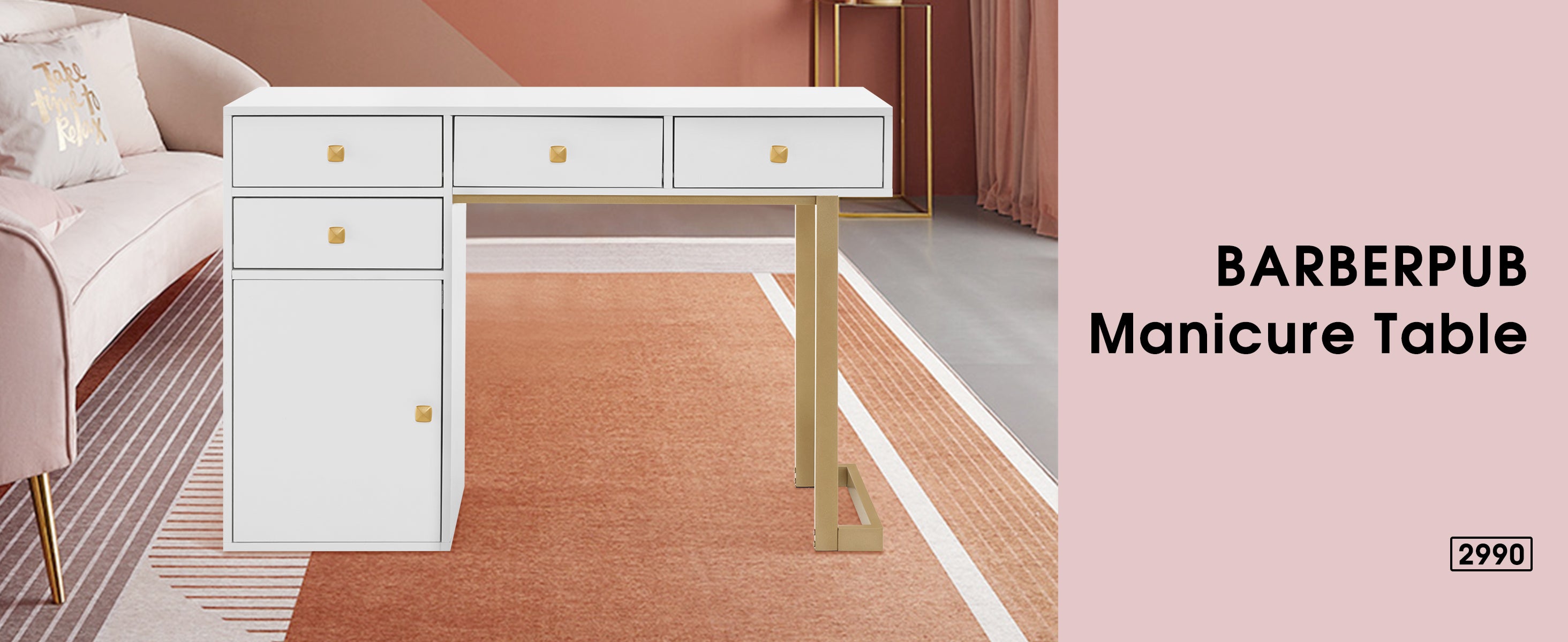 BarberPub Manicure Table with Storage Drawers 2990