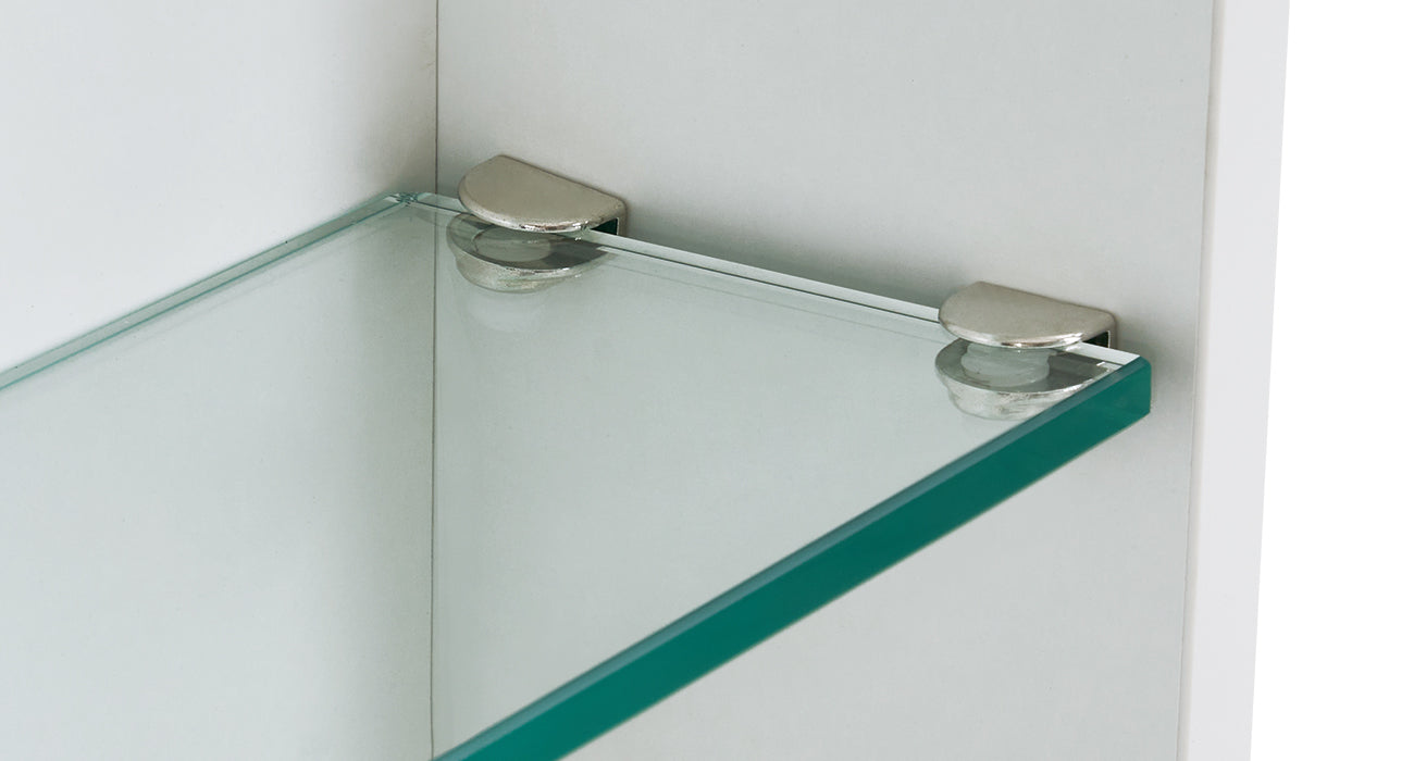 Each glass shelf is equipped with 4 locking clips, which effectively prevent the glass from falling.