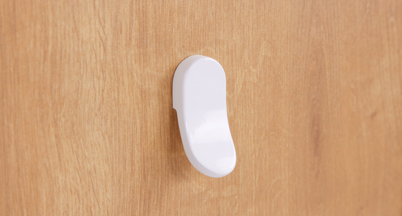 Minimalist white handles are slightly curved at the bottom for easy pushing and pulling, and feel comfortable in your hand.