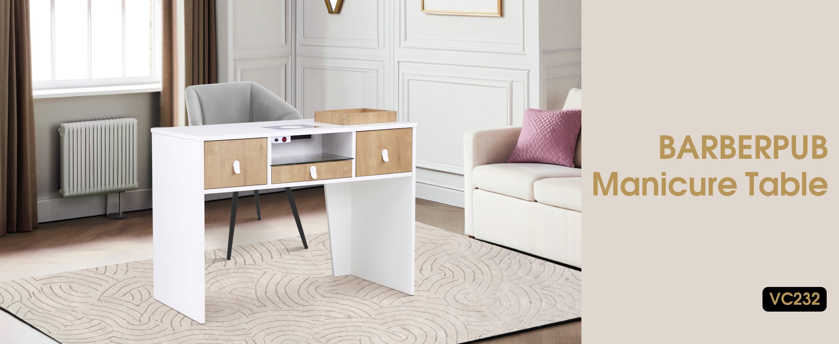 BarberPub Manicure Table with Electric Dust Collector & Built-In Socket VC232