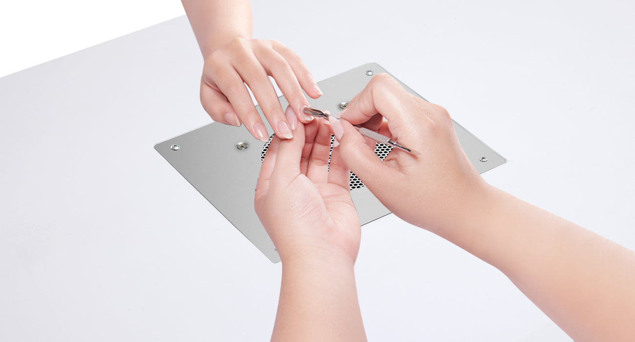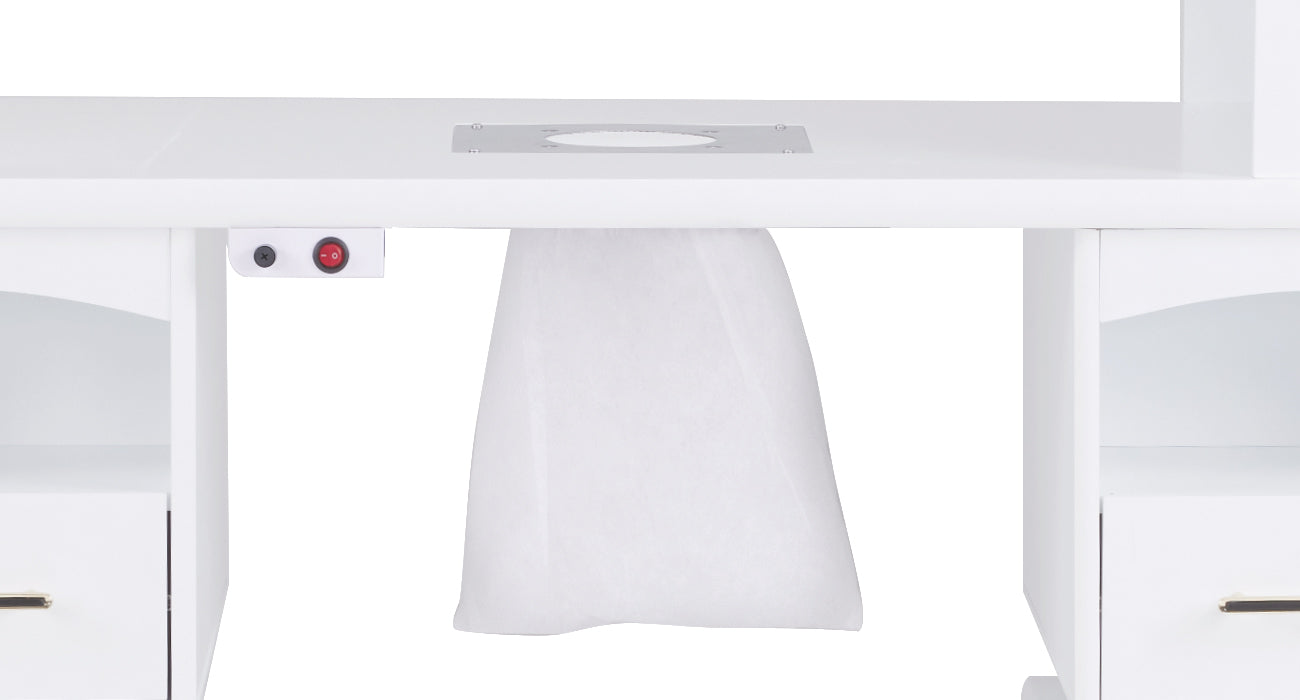 Efficiently captures nail dust with a powerful electric system, keeping the workspace pristine and professional.