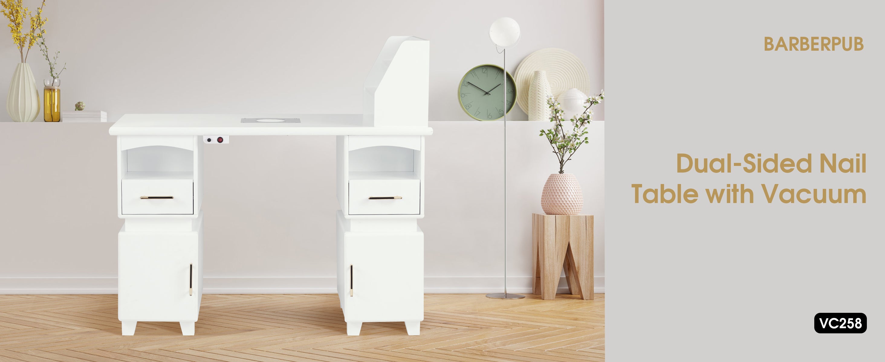 [High-Quality Hardware]: Smooth drawer slides, sturdy soft-close hinges, premium handles and metal electric vacuum offer practicality with an upscale touch and ensure long-lasting use in your beauty salon or home nail studio.