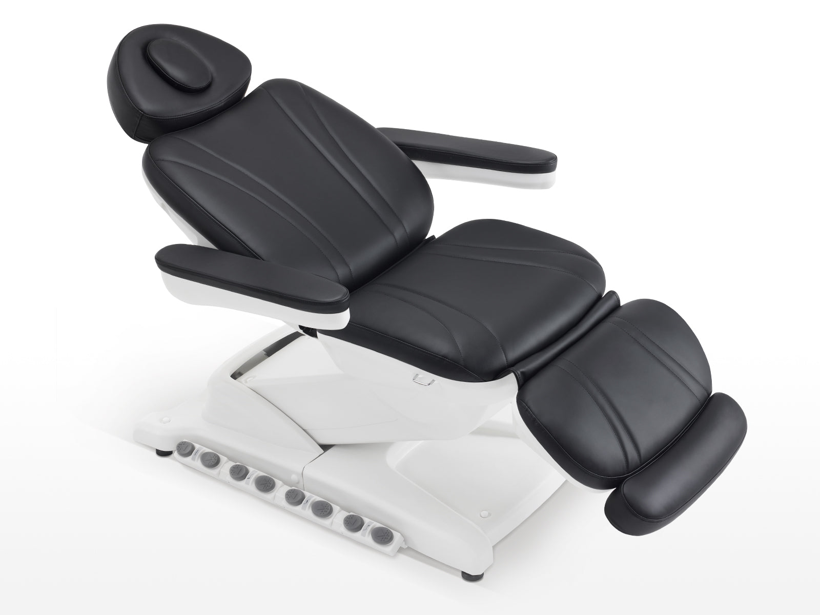Crafted from premium PU leather and high-density foam, it offers superior comfort and durability. With a robust weight capacity of 400 lbs, it accommodates a wide range of clients. The interchangeable dual headrest adds versatility, while four electro-hydraulic motors ensure smooth adjustments to the backrest, leg rest, height, and tilt.