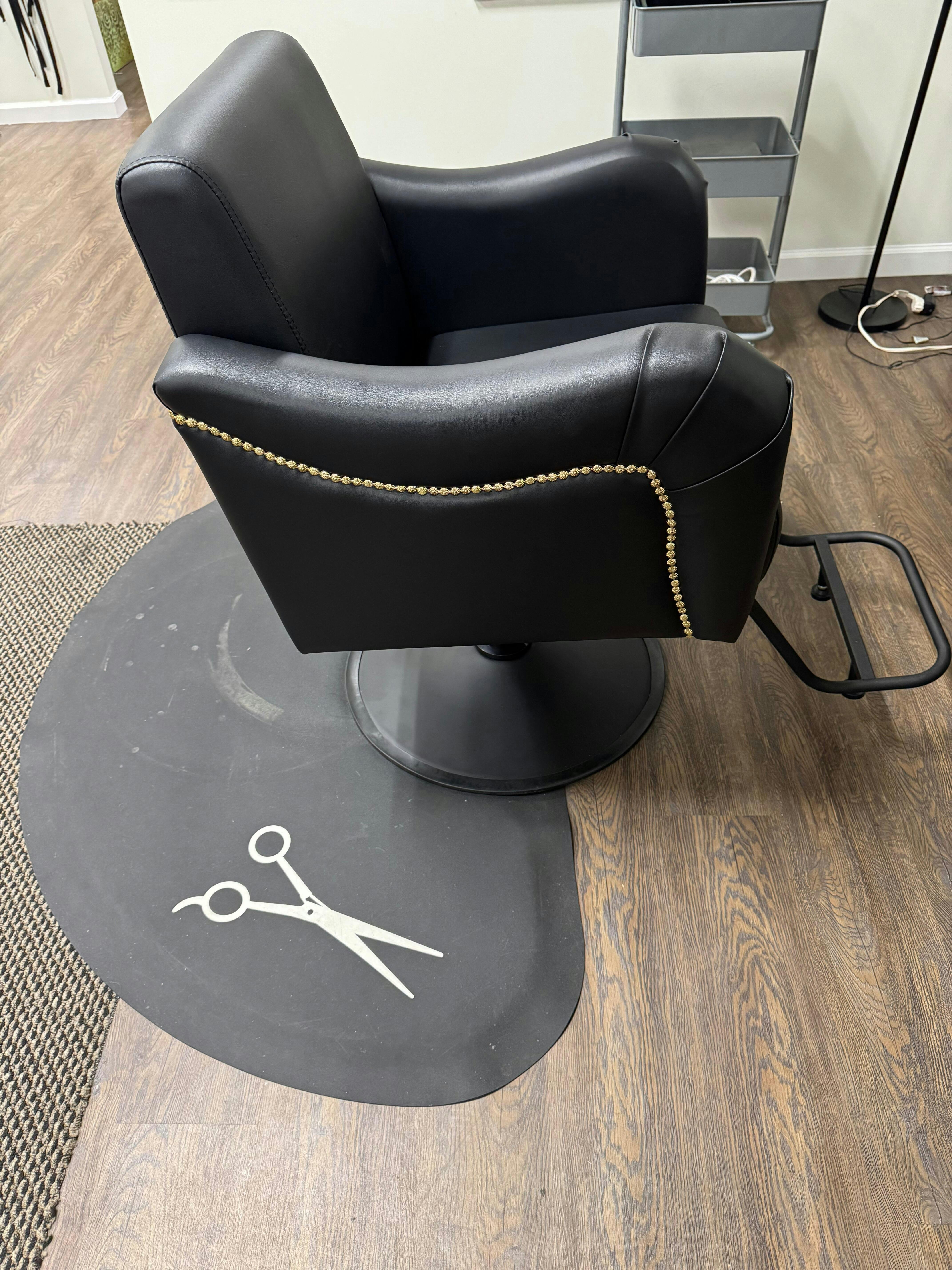 - Stylish & Professional Appearance: Designed to elevate any salon or barbershop, this chair features a sleek black faux leather finish with elegant gold stud accents that add a touch of luxury to your space.