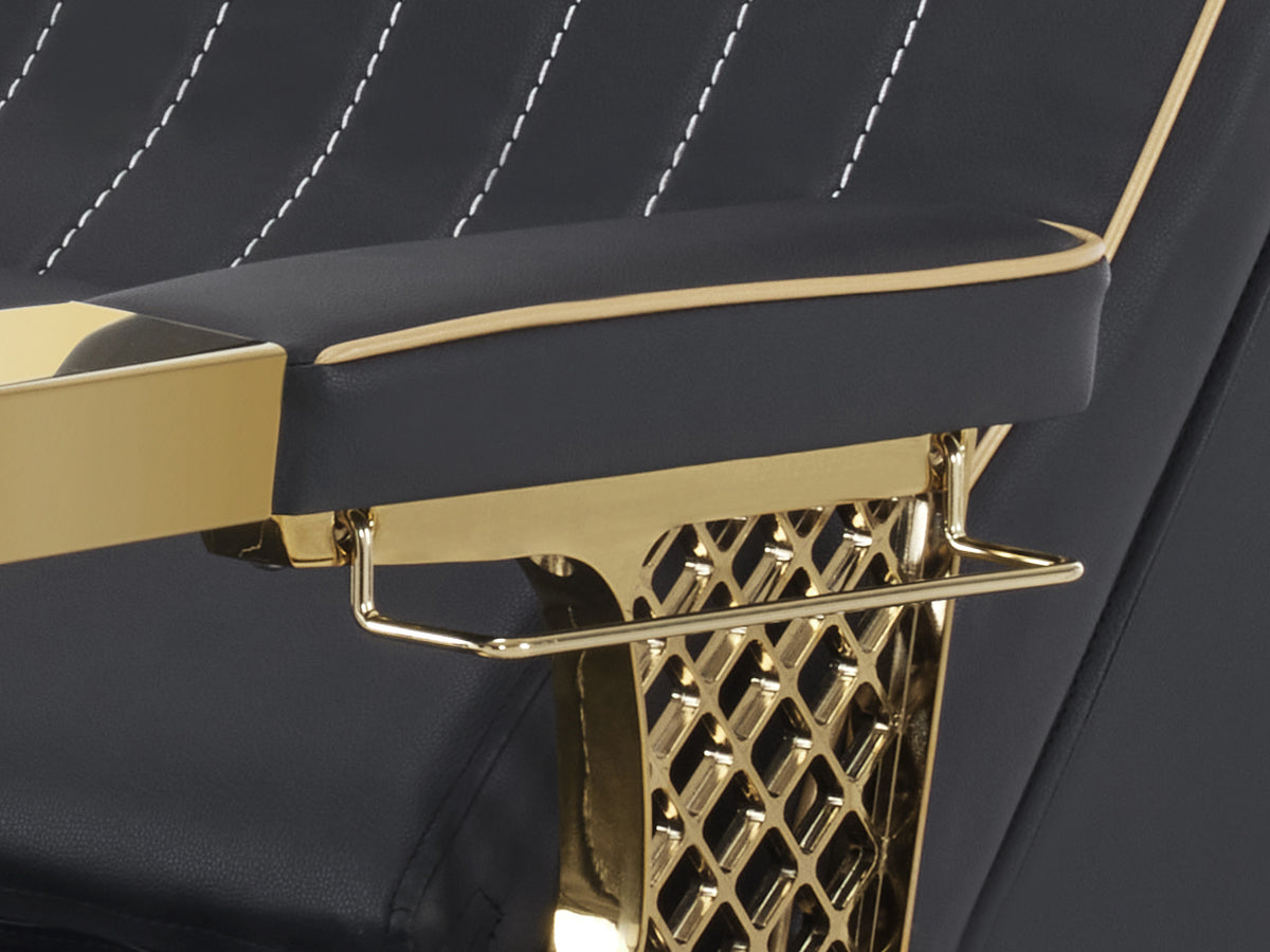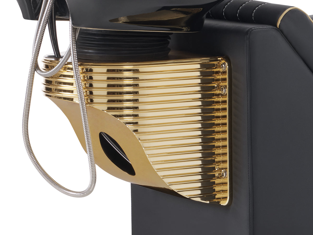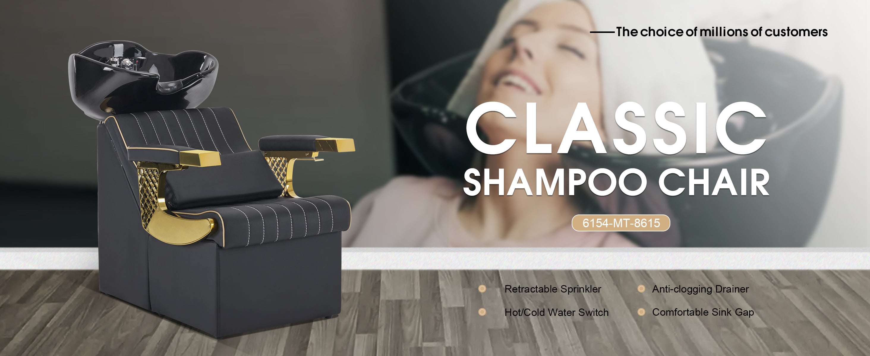 - Classic Design: The backwash shampoo station chair is classic and elegant. The C-shaped stainless steel gold armrest frame offers both style and functionality, and it provides ample support for customers' arms, enhancing comfort and relaxation.. The smooth lines and classic black&gold color scheme are suitable for different styles of salons, barbershops and so on.