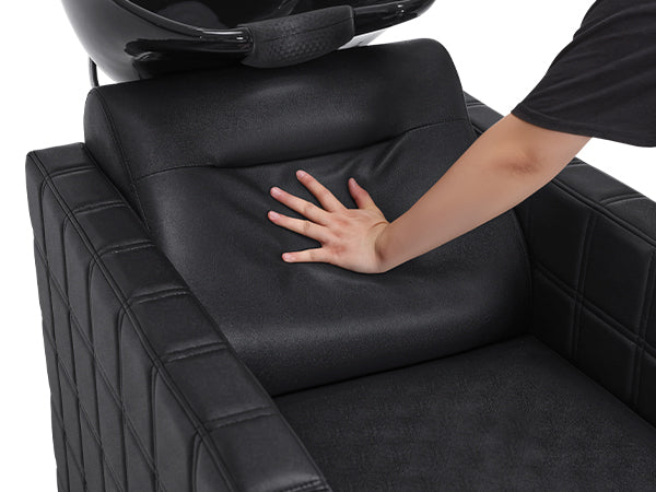 The backwash shampoo station chair features a classic simple style. Classic checkered stitching adorns the armrests and adds a modern touch to the salon. The backrest and seat cushion filled by high density sponge provide comfort for client. And the barber shampoo chair is made of high quality faux leather, which is waterproof and easy to clean for barbers. This classic shampoo chair is suitable for your hair salons, spa salons and barber shops.