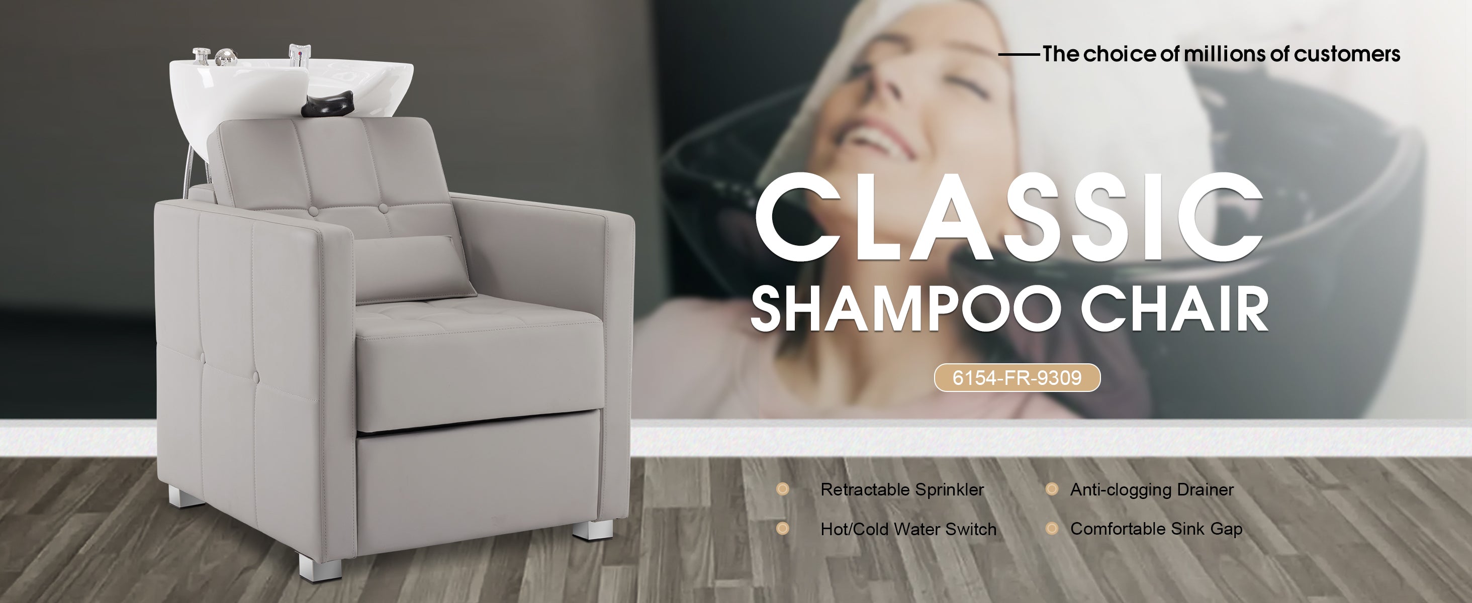 - Classic Design: This backwash barber chair features a classic design and color scheme. The plaid and decorative buttons on the leather make its appearance more classic. Its color scheme of business style-black chair equipped with dark bowl and the grey chair equipped with white bowl-will catch people’s eyes.