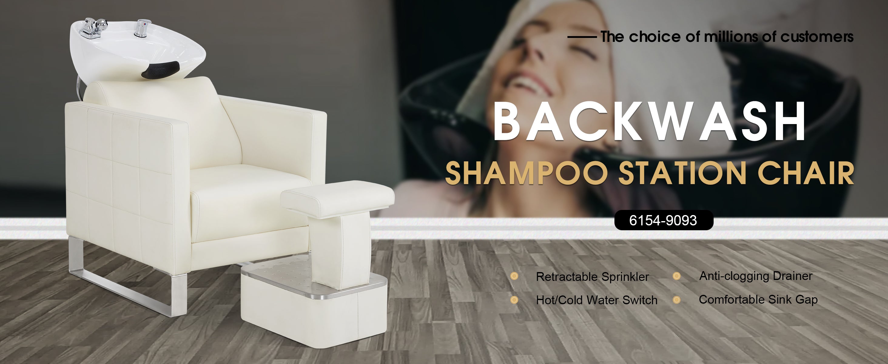 - Stainless Steel Base: The salon shampoo station chair features the stainless steel bases that provides stability and durability. The stainless steel base not only enhances the chair's overall aesthetic with a modern finish but also is convenient to clean and maintain.