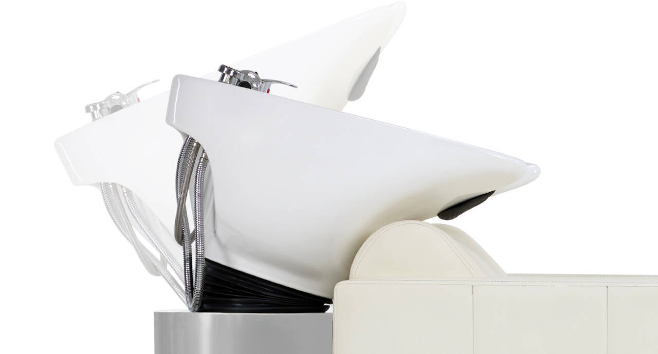 - Adjustable Ceramic Shampoo Bowl: The shampoo bowl features a sleek, ergonomic design that enhances the comfort of both clients and stylists. Its adjustable angle allows for proper positioning and ensures a comfortable washing experience for clients. The shampoo basin is made of ceramic, ensuring convenient cleaning. The height of the shampoo bowl from the ground is 41.3 inches, allowing stylists to work comfortably.