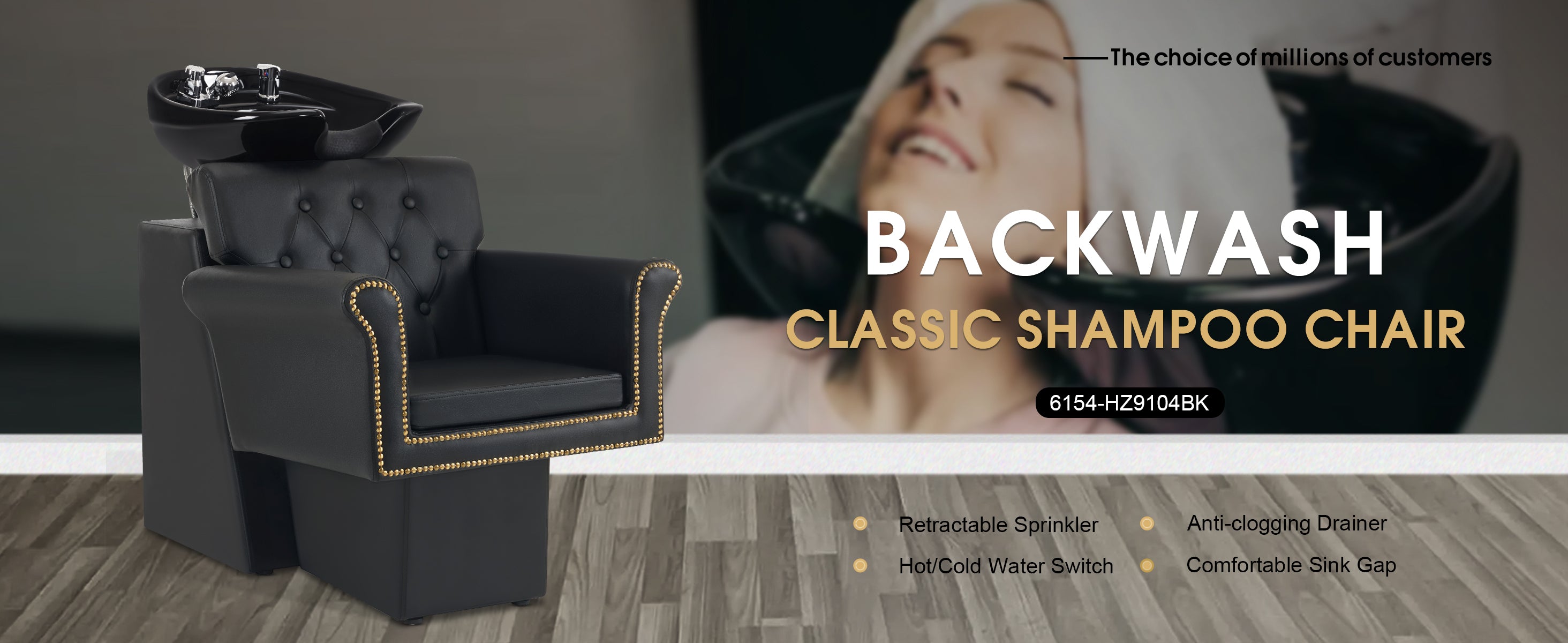 The vintage black backwash shampoo station chair is sturdy and stable, with the graceful design. The button-adorned backrest and rivet-adorned armrests add elegance to the shampoo chair. High-density sponge and adjustable shampoo basin bring more comfort to your clients. And the salon shampoo bowl and chair is made of faux leather and easy to clean. The shampoo chair is suitable for different styles of hair salons, spa salons and barber shops. It will be a good partner in your barbers, home salon.
