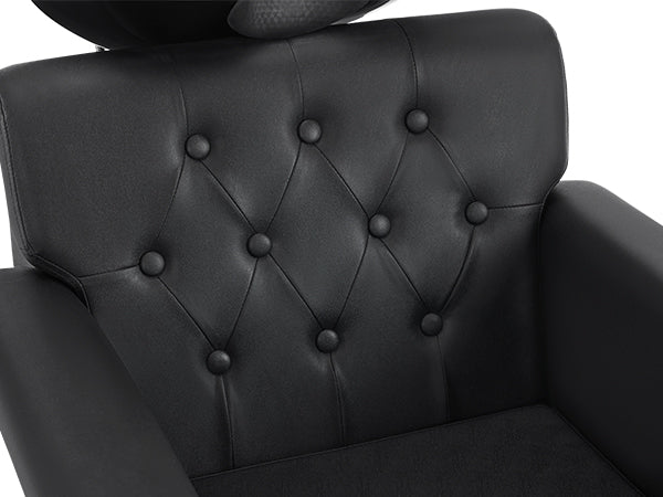 - Elegant Design: The armrests are adorned with exquisite gold rivets, and the backrest features the classic button design. This stylish shampoo station is not only highly functional but also enhances the sense of luxury in any spa, salon, or barbershop.