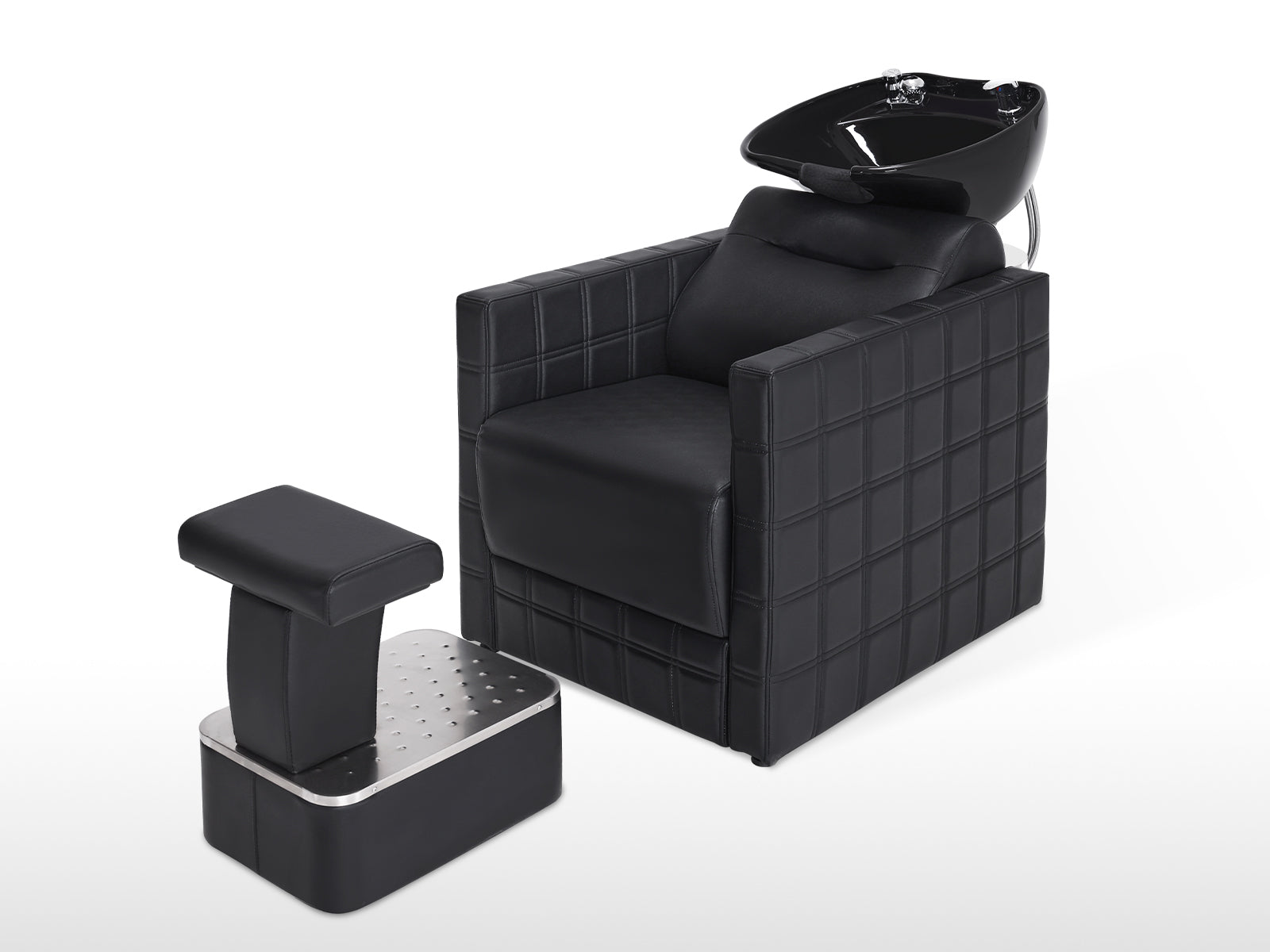 The backwash shampoo station chair features a classic simple style. Classic checkered stitching adorns the armrests and adds a modern touch to the salon. The backrest and seat cushion filled by high density sponge provide comfort for client. And the barber shampoo chair is made of high quality faux leather, which is waterproof and easy to clean for barbers. This classic shampoo chair is suitable for your hair salons, spa salons and barber shops.
