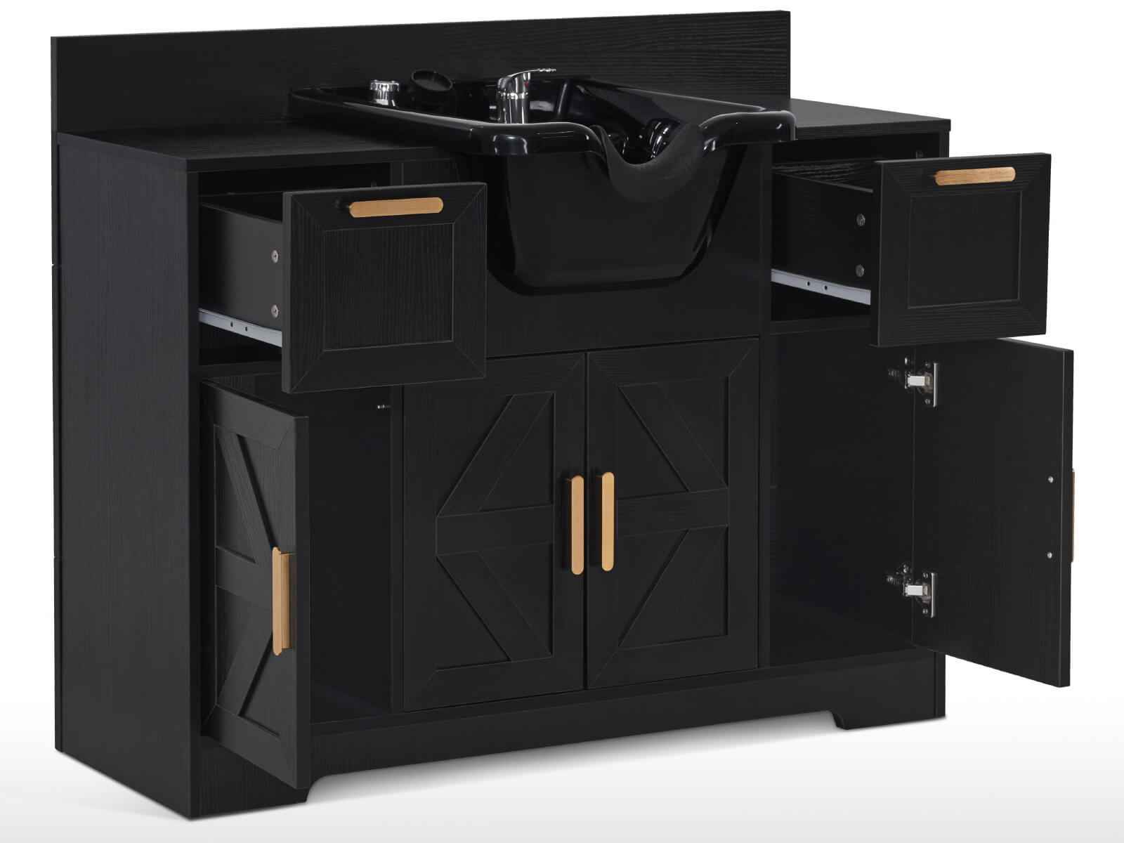 Barber Shampoo Storage Station, Hair Salon Shampoo Equipment with Backwash Sink & Cabinet 7137