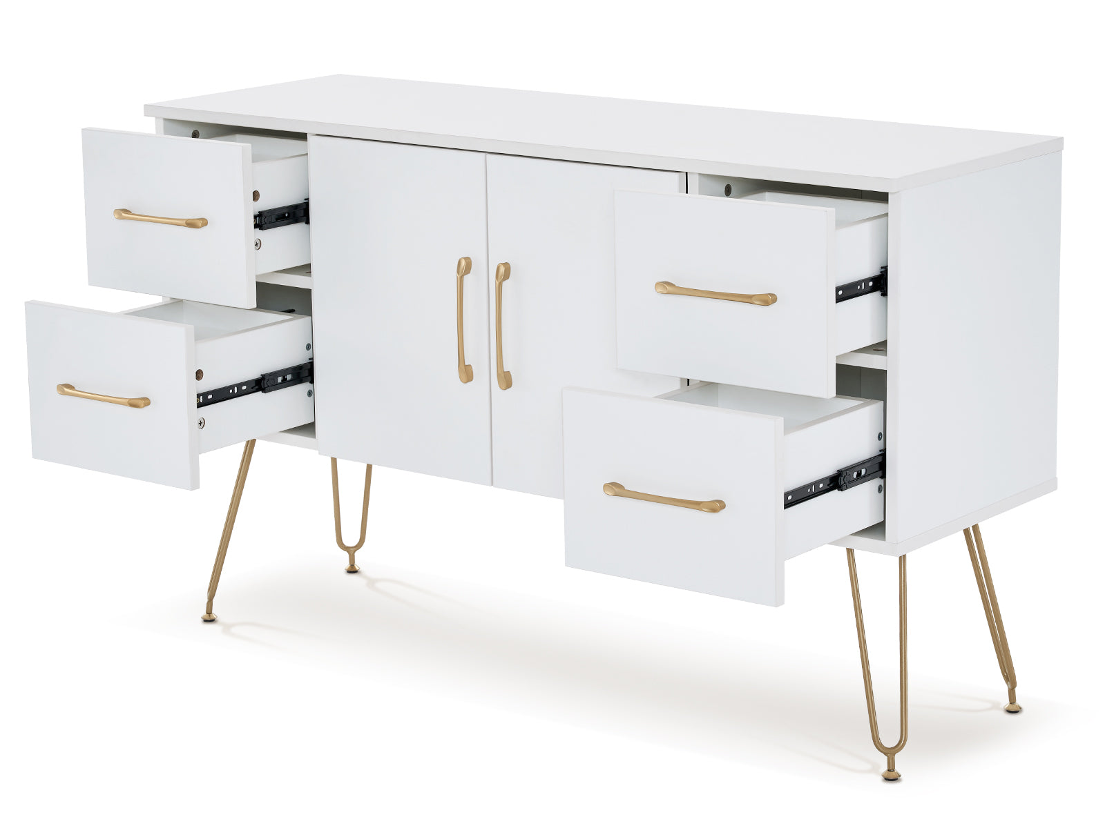 The overall design of the beauty station is biased towards the luxury style, the white cabinet with gold handles and support legs will enhance the bright sense of space. The salon station will meet your different work needs with rich storage space, which giving you a different experience.