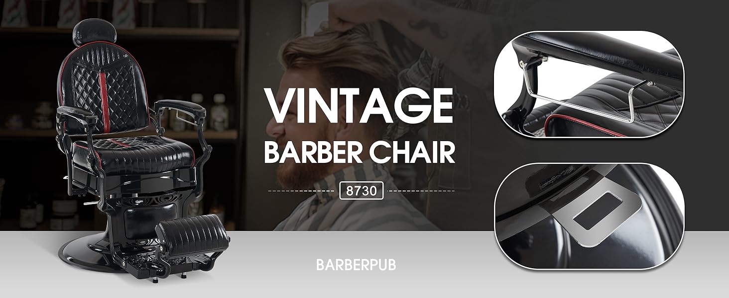 - 【Retro&Vintage Design】This retro vintage style professional barber chair adopts black and white "Panda" classic colorway, which shows the design sense and excellence of the chair. The backrest is designed in a unique semi-oval shape, and both the seat and the backrest have different design textures in different areas.This barber chair has a simple shape, modern aesthetics, fine workmanship, and humanized design, which is very suitable for retro-style barbershops, salons, etc.