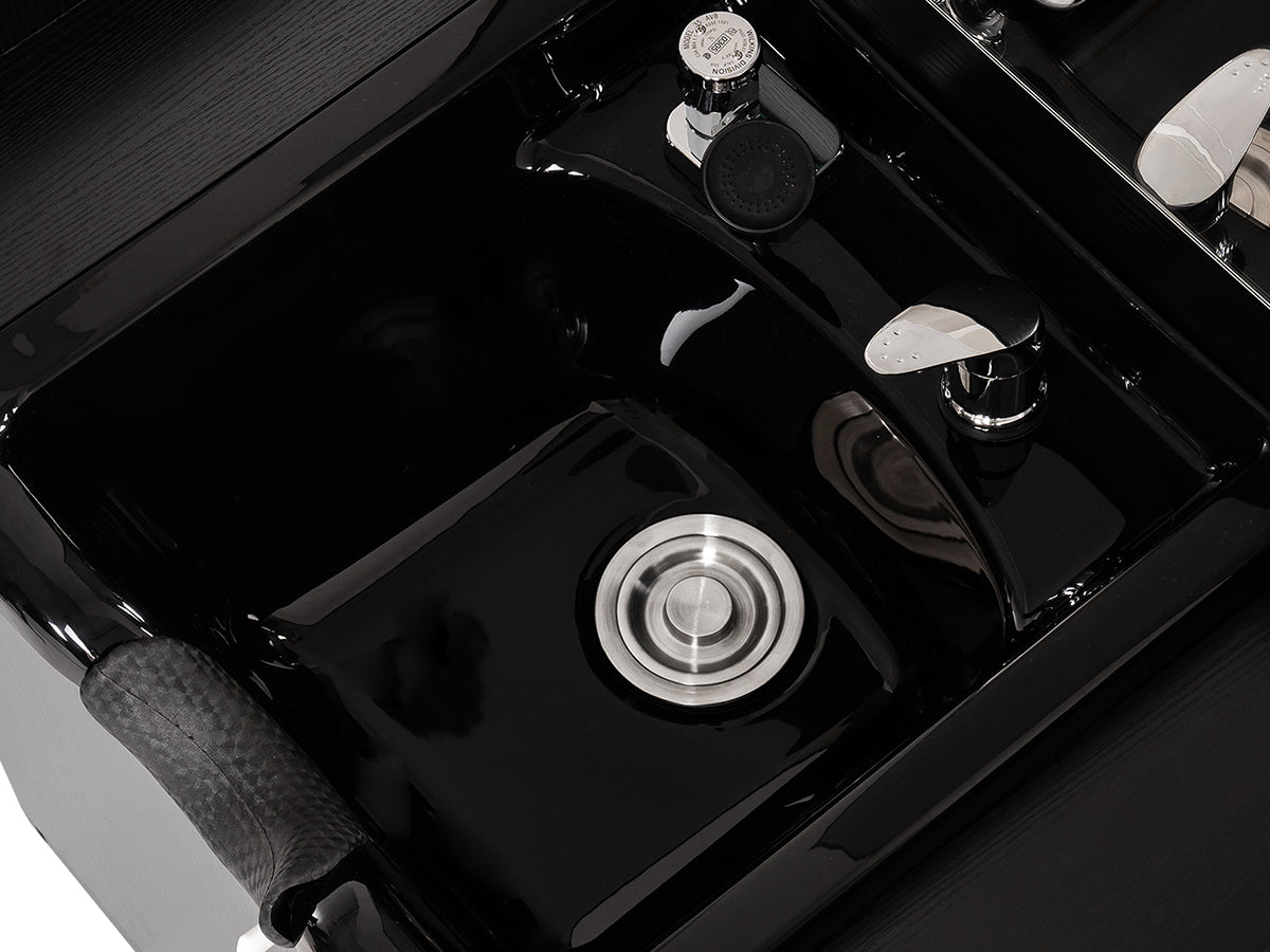 Convenient work: This station fits a shampoo bowl that you can use it directly when rotate and recline the barber chair to the proper height, and then the mirror will display the look while doing hair. The work station is also spacious enough for you to put anything on the table top during your daily work.