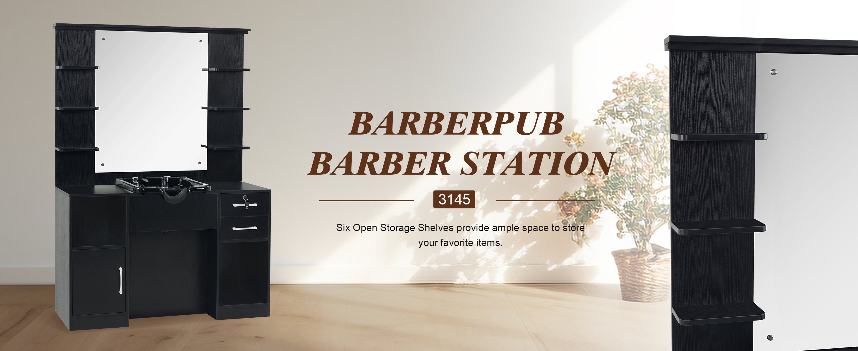 Multiple Function: The shampoo station comes with a Shampoo bowl, Half body mirror, 6 Shelves, 2 Open Closets and 1 Storage Cabinets, 2 Drawers. The spacious storage space is enough for keeping salon tools. It allows various use to match different shampoo chairs or barber chairs in your barbershop. This shampoo backwash station can not only wash hair, but also can be used as a mirror table for haircuts.