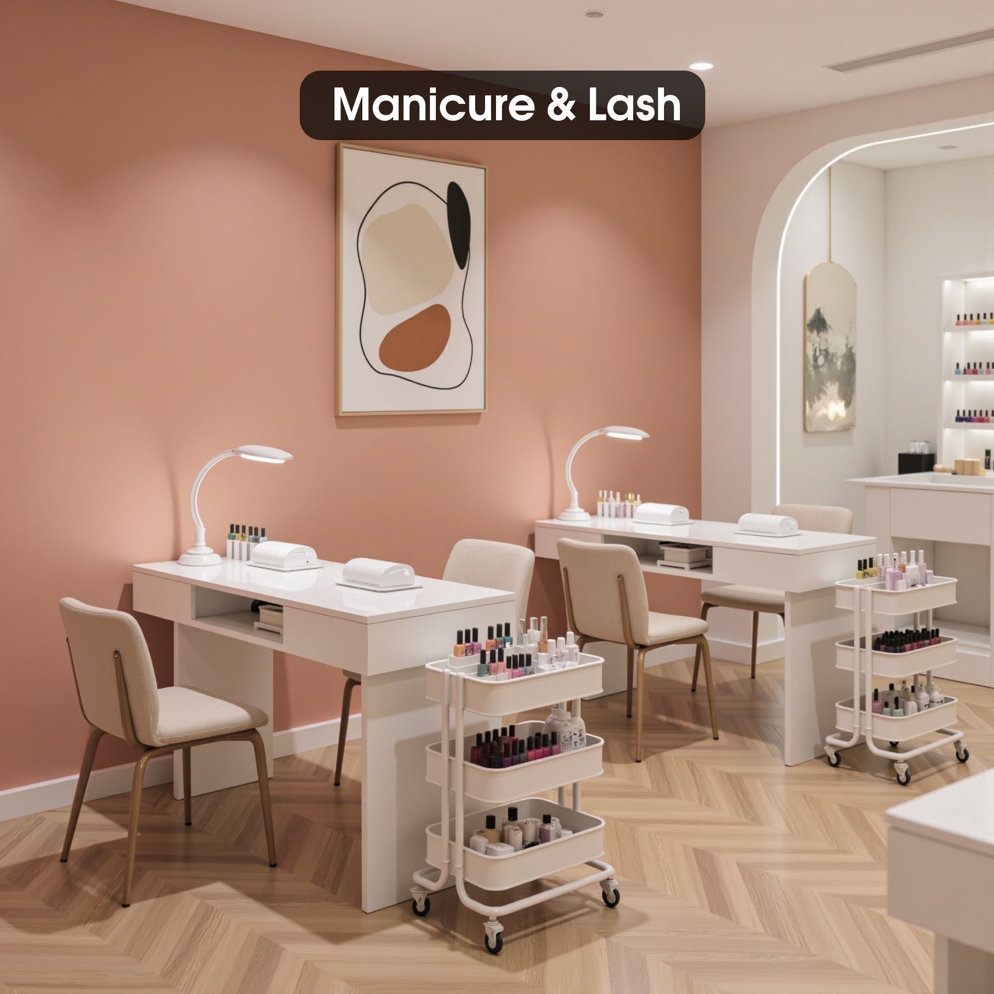 BarberPub Manicure Table, Nail Makeup Desk Salon Workstation for Storage 2611