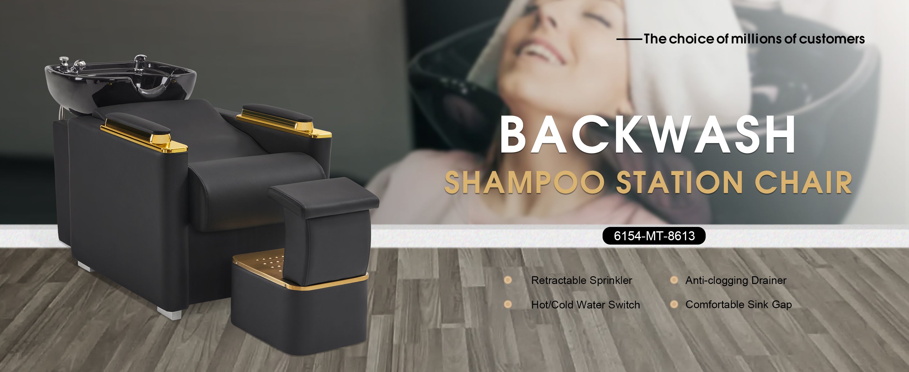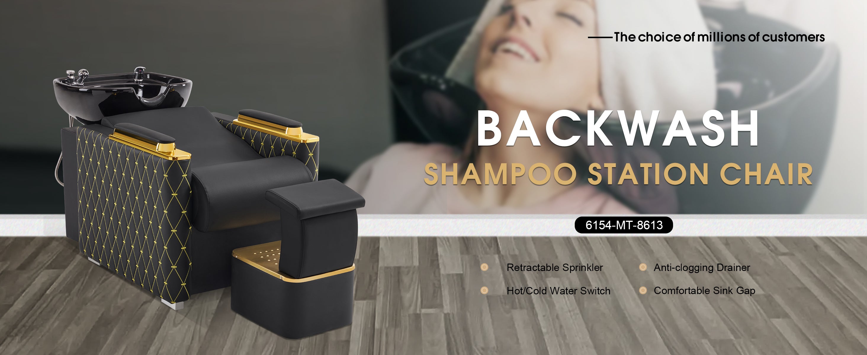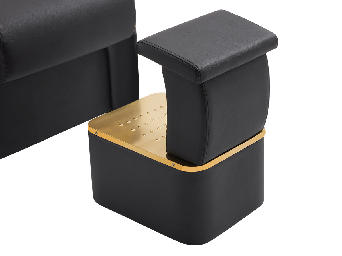 This shampoo station chair features a classic black and gold color scheme, showing an air of nobility and elegance. The independent footrest enables you to adjust according to personal preferences and needs, offering a more personalized service. This shampoo chair not only has an elegant look but also ensures easy maintenance, allowing you and your clients a comfortable and reassuring shampooing experience. All in all, it is suitable for hair salons, spa salons, barbershops of different styles.