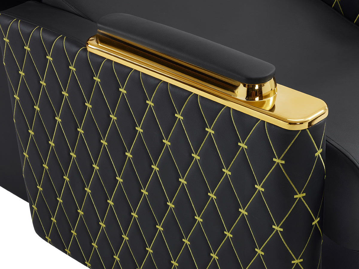 - Classic Appearance: This professional backwash barber chair features a black and golden color scheme, allowing it has an elegant and luxurious aura. It is mainly black in color, with armrests equipped with gold decorations and a gold foot pedal, adding a feeling of luxury without excessive complexity.