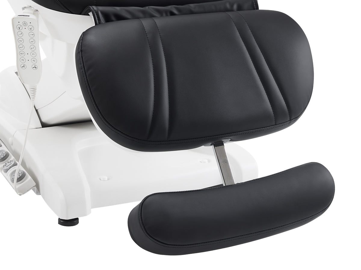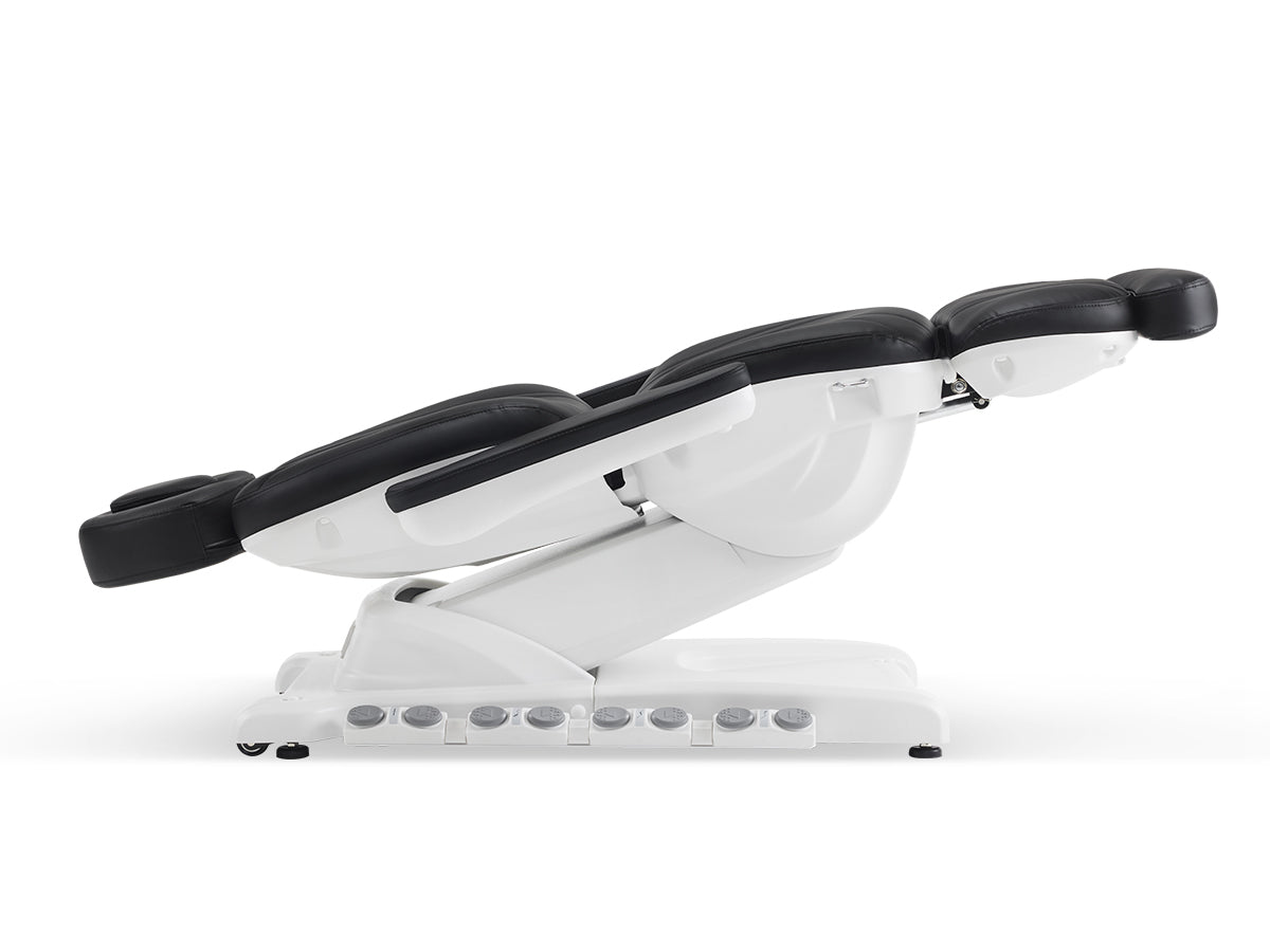 Experience exceptional relaxation with this top-of-the-line electric esthetician bed, designed for high-end spas and salons. Crafted from premium PU leather and high-density foam, it offers superior comfort and durability. With a robust weight capacity of 400 lbs, it accommodates a wide range of clients. The interchangeable dual headrest adds versatility, while four electro-hydraulic motors ensure smooth adjustments to the backrest, leg rest, height, and tilt. Whether you're using it as an electric spa chair, facial chair, or tattoo bed, this luxurious, state-of-the-art investment is perfect for delivering a premium experience.