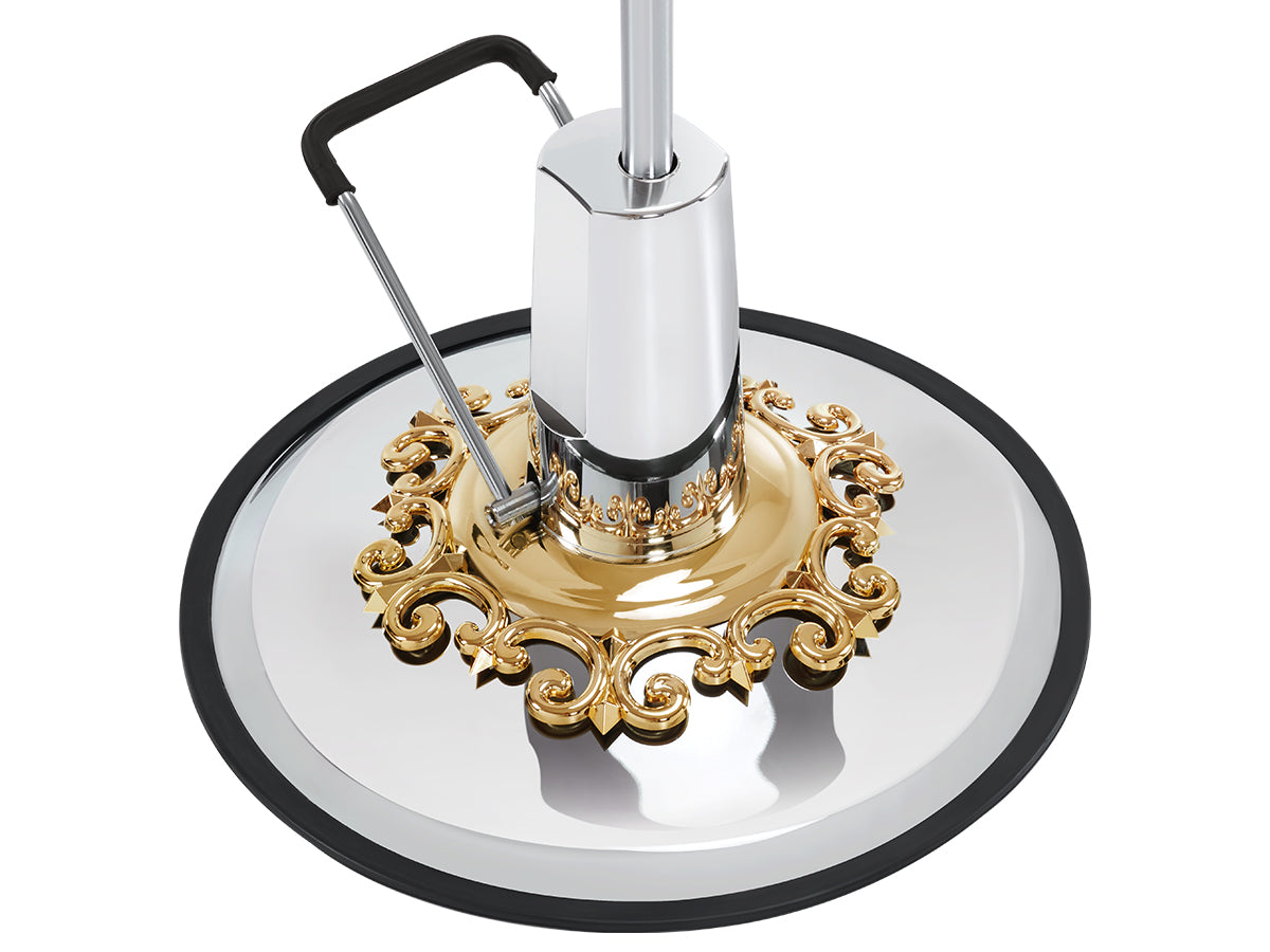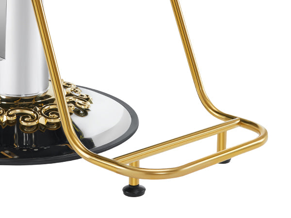 This salon styling chair is available in different colors of PVC leather, which caters to the aesthetic preferences of different hair stylists. The green and gold combination exudes freshness and vitality, infusing the space with a refreshing ambiance. The black and gold pairing showcases a classic and luxurious style.