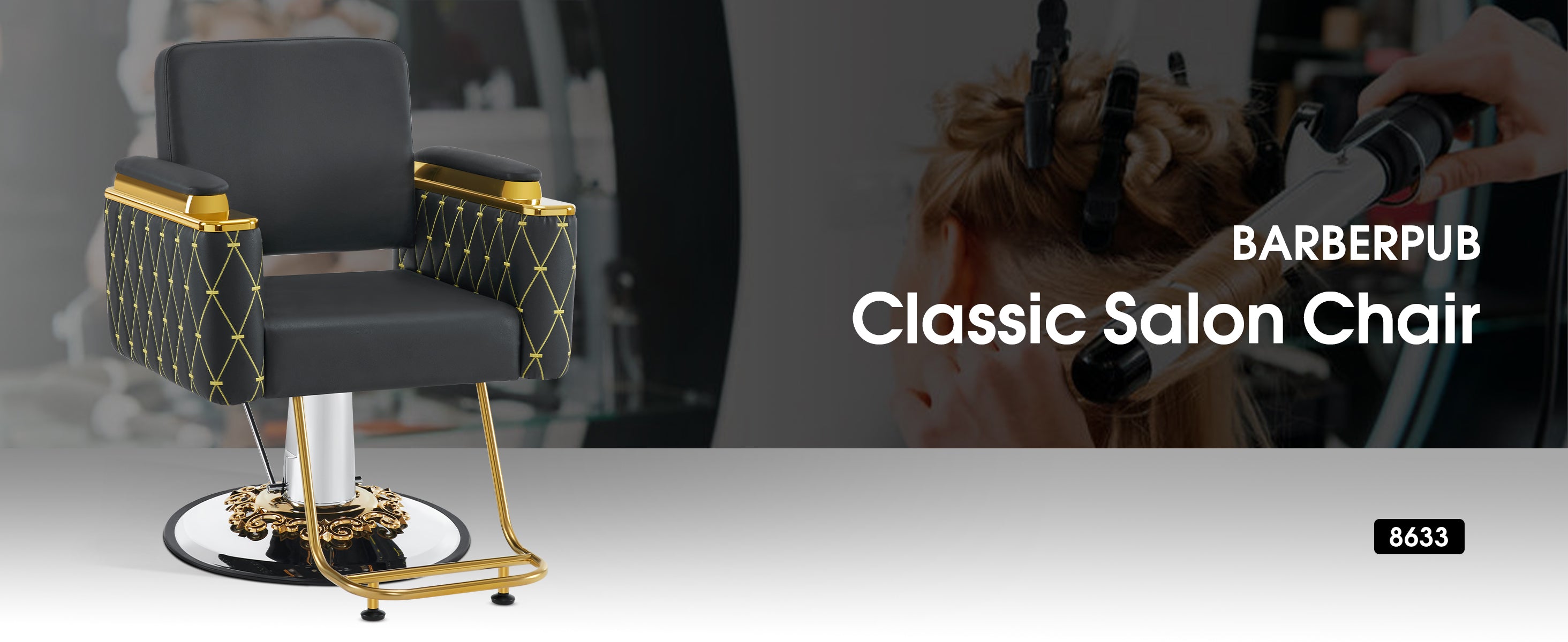 BarberPub Gold&Black Salon Chair, Hydraulic Barber Spa Styling Equipment 8633