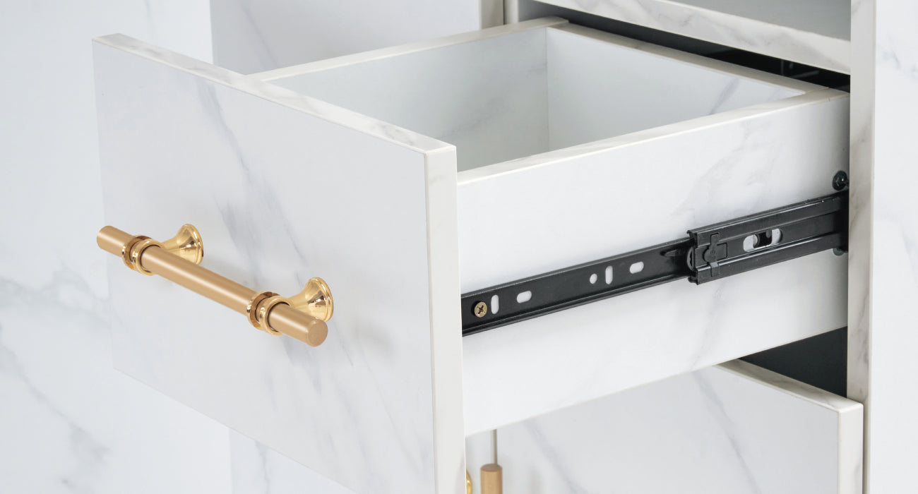 High-Quality Material: Made from 0.63'' thick particle board, this well-crafted nail desk for tech is sturdy and durable for long-lasting use, supported by metal brackets. Prime rails and damped hinges provide a comfortable experience. The beautiful and exquisite handles make the nail table more attractive.