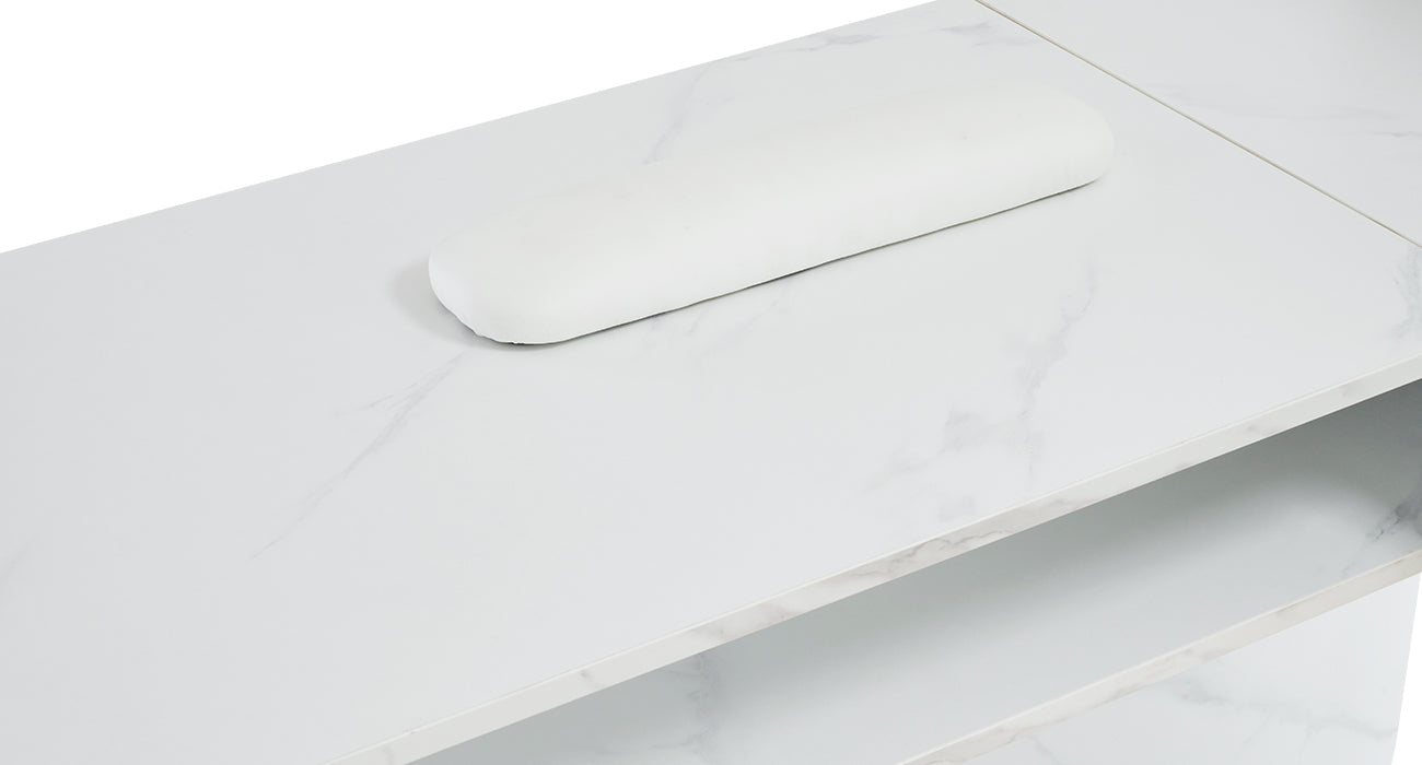 This modern manicure workstation with ample workspace will be the wonderful partner for your manicure. The L-shaped design can optimize the space efficiently and maximize the workspace. With functional and attractive design, this manicure table for nail technician will give you a comfortable nail work experience!