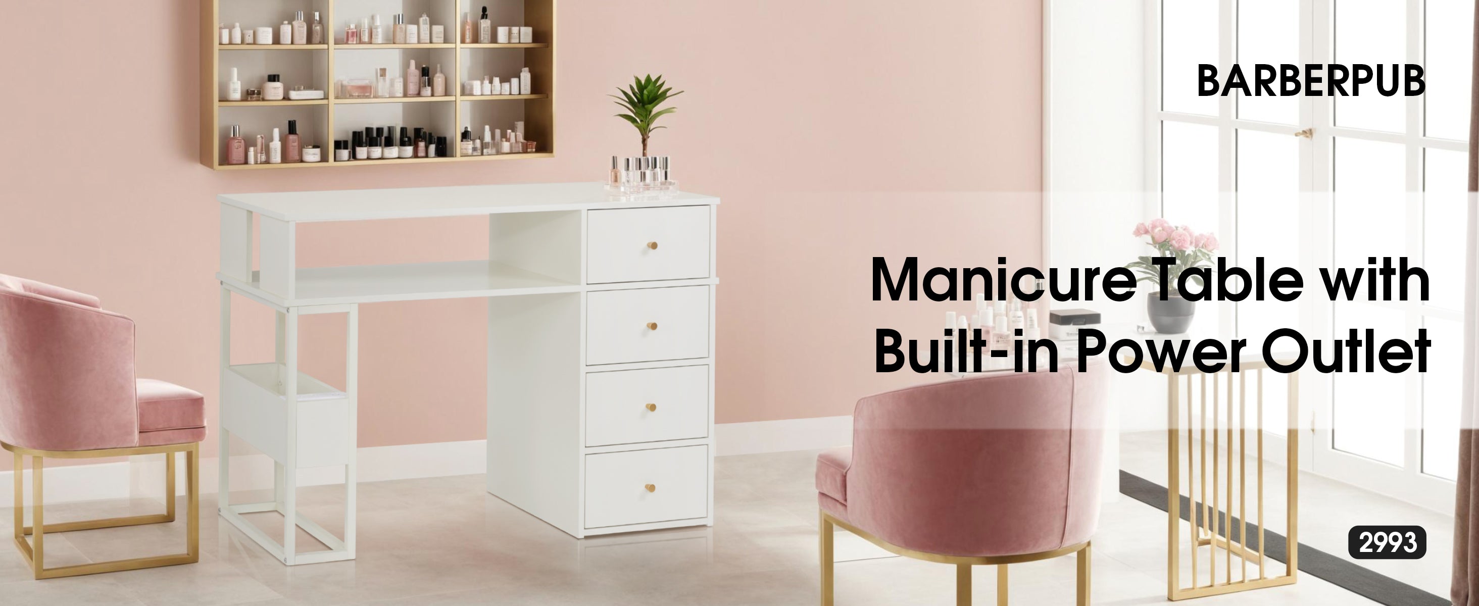 BarberPub Professional Manicure Desk with Storage, Power Supply 2993
