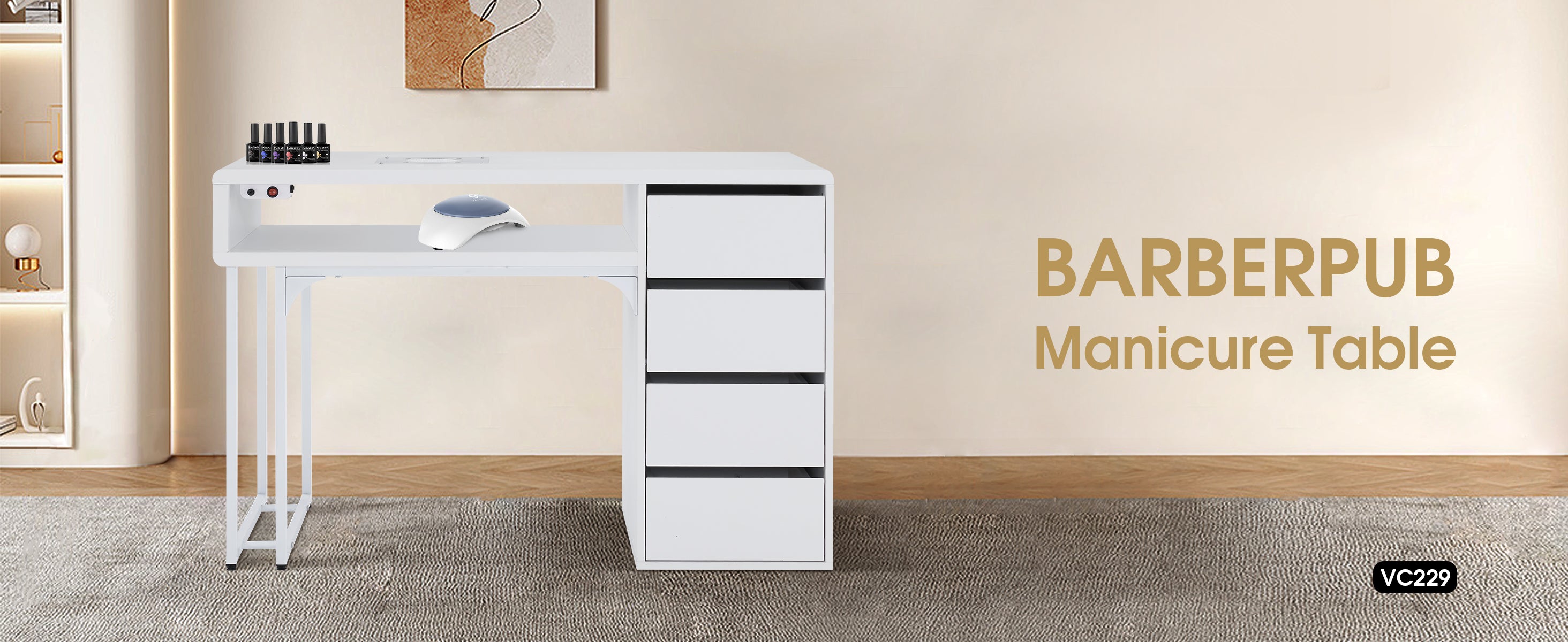 BarberPub Nail Storage Desk with 60W Nail Vacuum Cleaner VC229