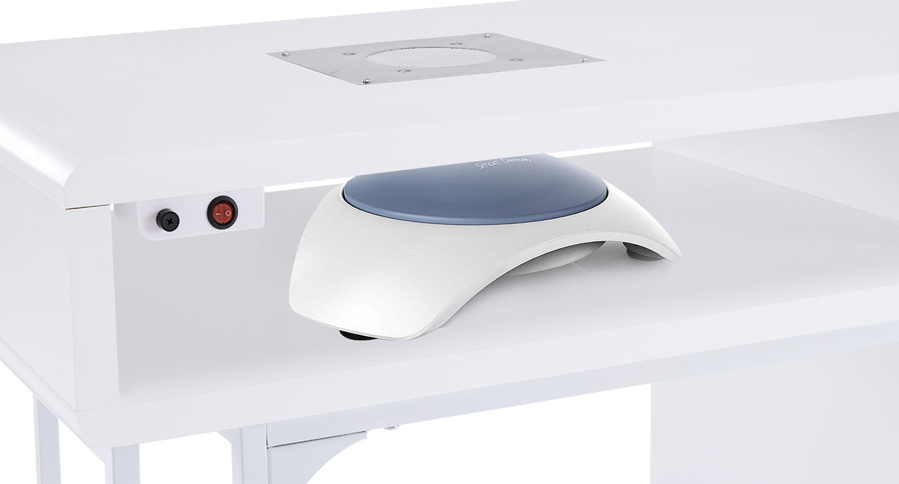This manicure table with a built-in nail vacuum cleaner, tackles the issue effortlessly. 4 spacious drawers can satisfy manicurist’s demands for storing tools and nail polishes. Double table tops not only allow nail technicians to freely display their skills, but also allow for the placement of nail lamps and other necessary items.