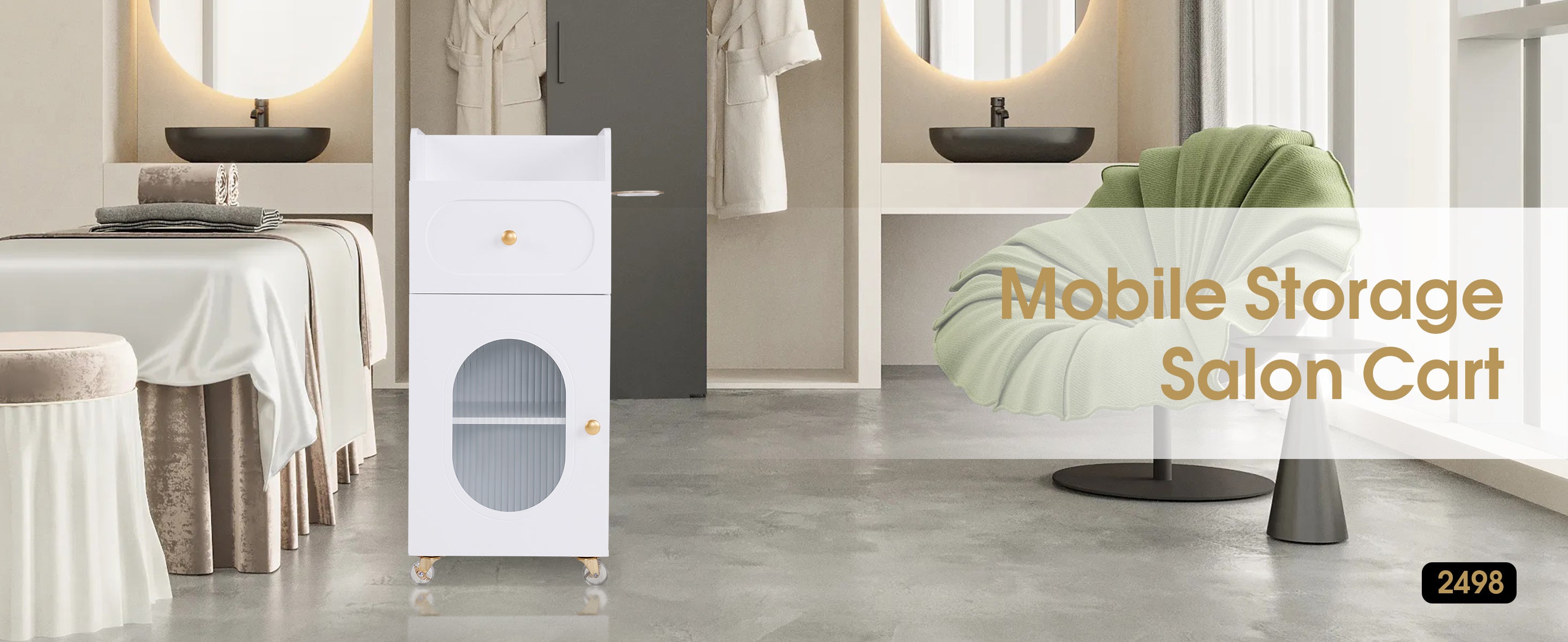 [Glass-Fronted Design]: Features a reeded glass door that adds a touch of elegance while allowing visibility into the salon cabinet for easy access to your stored beauty salon items.