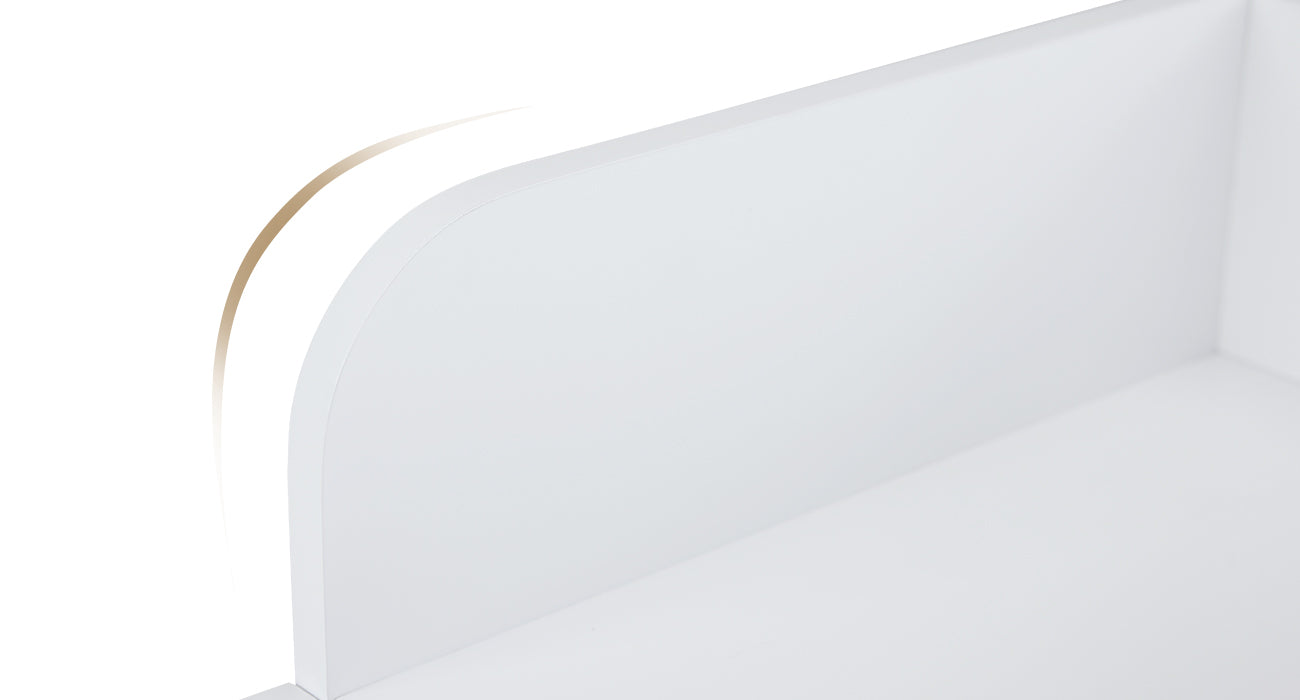 [Modern Versatility]: With its sophisticated white paint finish and gold accents, this design enhances the elegance of professional salons, offices, and home interiors, seamlessly complementing any setting.