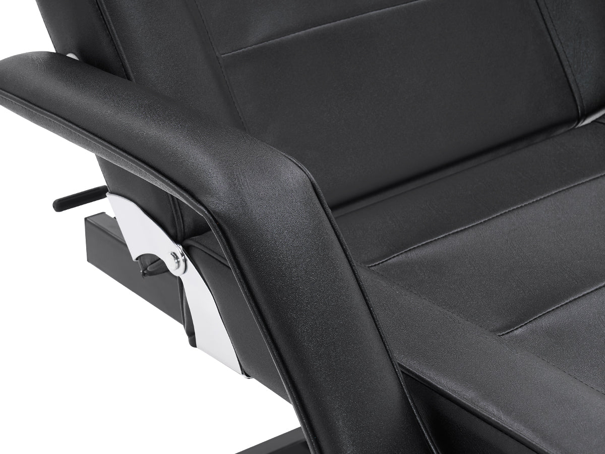 This electric beauty bed with classic design is a perfect complement for hair salon, beauty salons, tattoo parlors and more. Made of high quality steel frame, this multifunctional and ergonomic beauty lounger is very sturdy. The steel base is heavy, anti-slip and it increases the stability of the chair. With remote control, you can adjust the height easily and quickly. It is also possible to adjust the backrest angle and the footrest to achieve an ideal sitting position. The two armrests are extendable and support the body optimally. The chair also comes with removable headrest and a chromed towel rail. The soft padding in combination with the imitation leather cover ensures high comfort even when sitting for a long time.