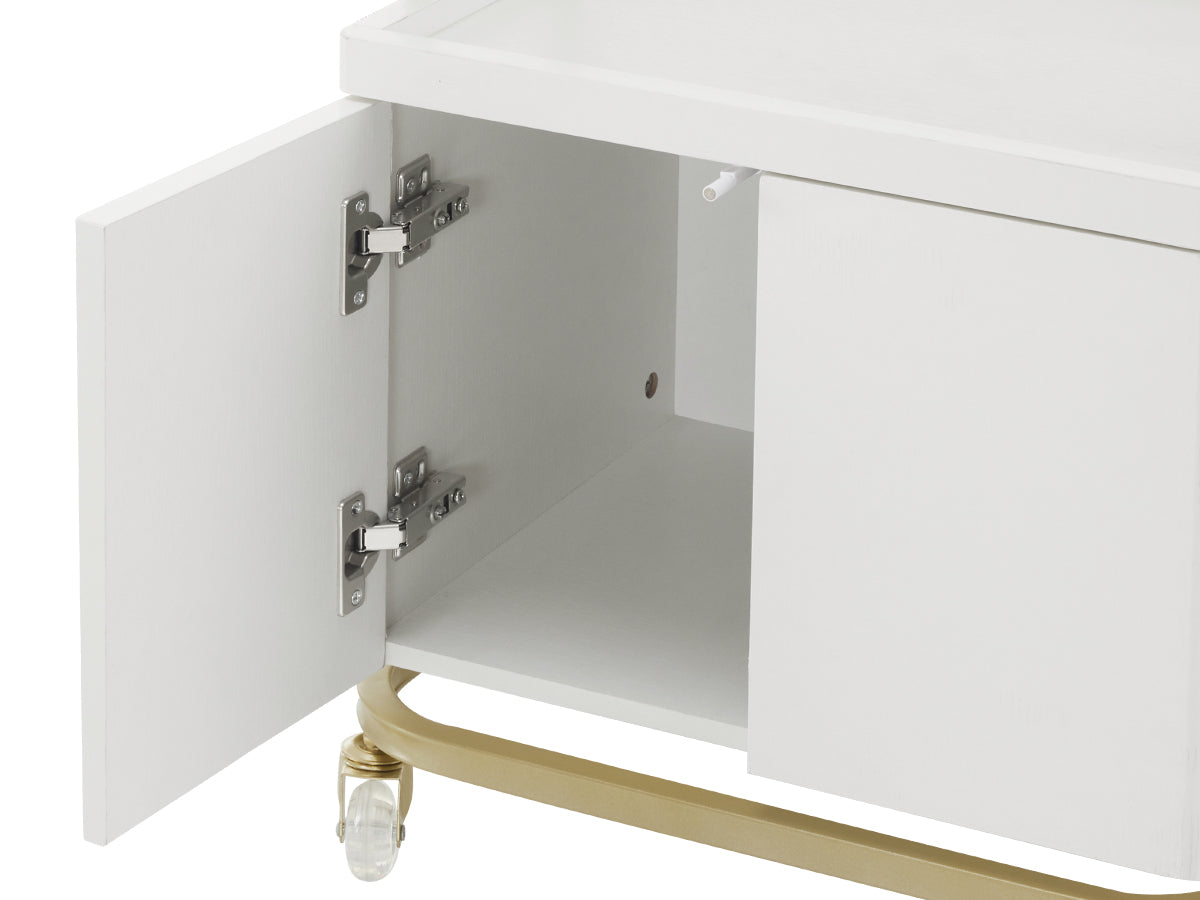 [Attractive Design]: The light luxury style trolley can offer a good experience and a deep impression for your customers. With streamlined golden metal frame, this white cart has beautiful appearance and sturdy structure.