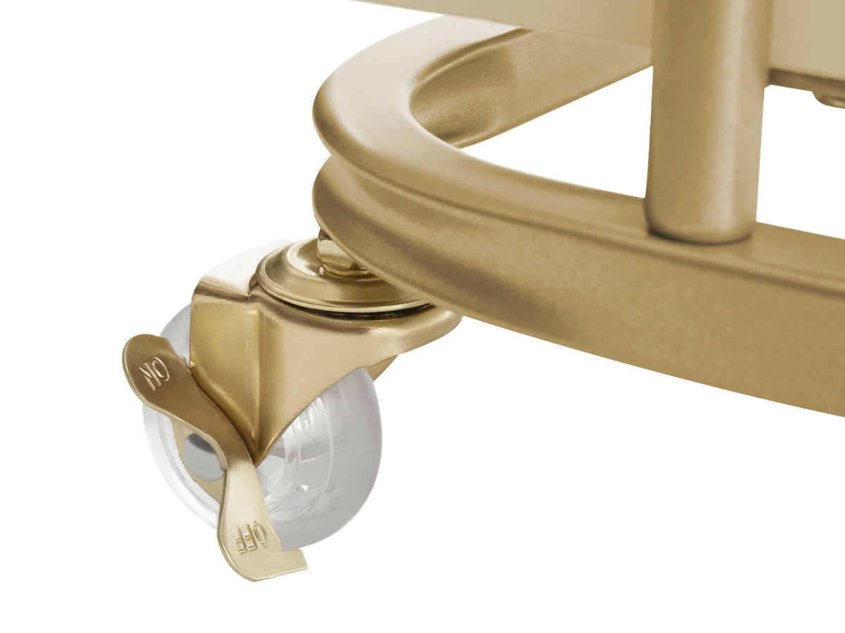 The white golden salon trolley is an excellent choice for your barber shop, nail salon and SPA shop. The cart features streamlined design that comes with both aesthetics and practicality. With 4 universal wheels, 2 of which are lockable, it can be easily moved and securely fixed as needed. This trolley can meet your needs of daily storage and easy to move anywhere.
