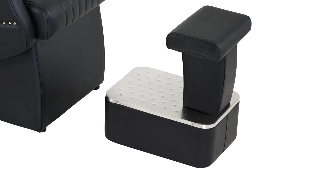 - Modern Design: Featuring a sleek black PVC leather finish with silver rivets adorning the armrests, the shampoo station chair combines sophistication and functionality for a modern salon look. The salon shampoo chair is suitable for different barber shops, salons, and spa environments.
