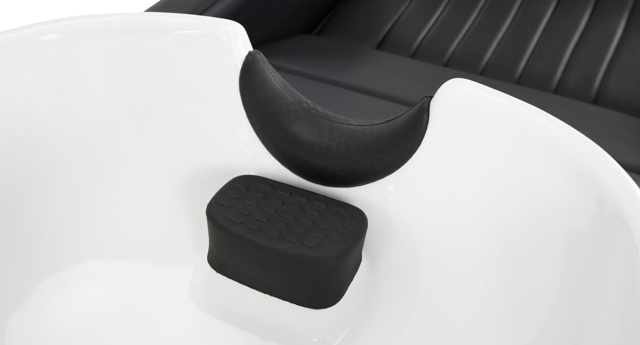 - Ergonomic Design: The shampoo bowl and chair set for salon is equipped with a neck pillow and a head pad, providing support and comfort for the neck. The shampoo chair has a 162-degree angle between the backrest and seat cushion, paired with an independent footrest, enhancing overall comfort and allowing clients to lie nearly flat for full body relaxation.